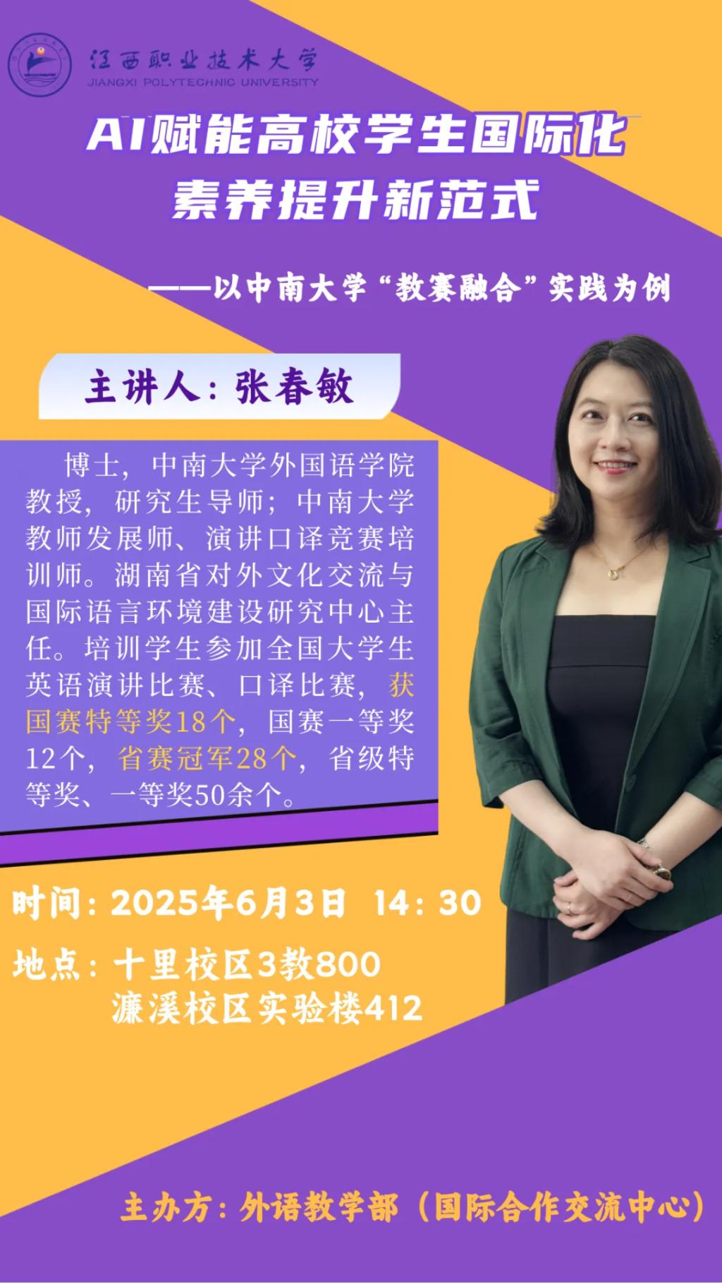 【来源:讲座预告|AI赋能高校学生国际化素养提升新范式 | 发布日期:2025-05-27 】
